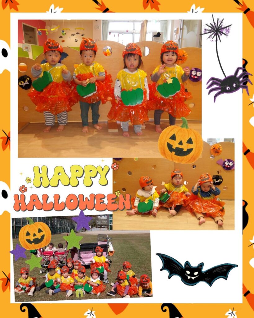 子どもたちはカボチャ、保育者はコウモリに変身して近くの公園へ♪