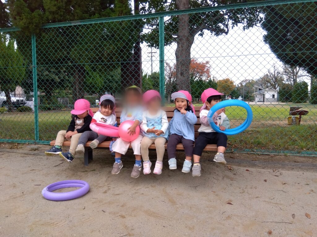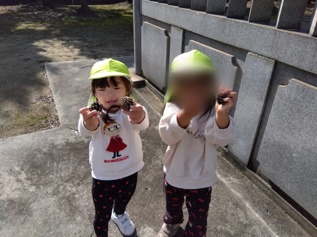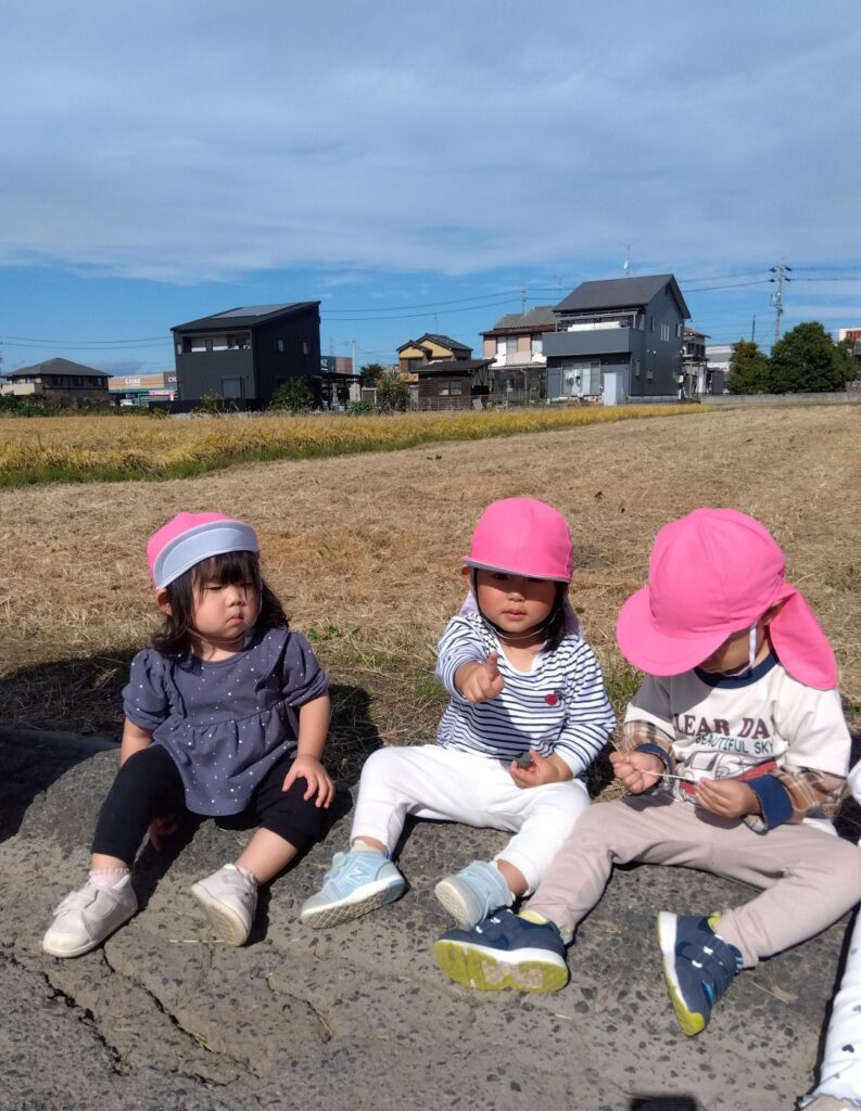 みんなで近くの公園や神社へお散歩に出かけました。途中に子ども達のお気に入りの休憩場所があり、腰を下ろして小動物を見つけたり、季節の草花を見つけたりしてゆったりと過ごします。しばらくするとパワー全開!出発進行!!