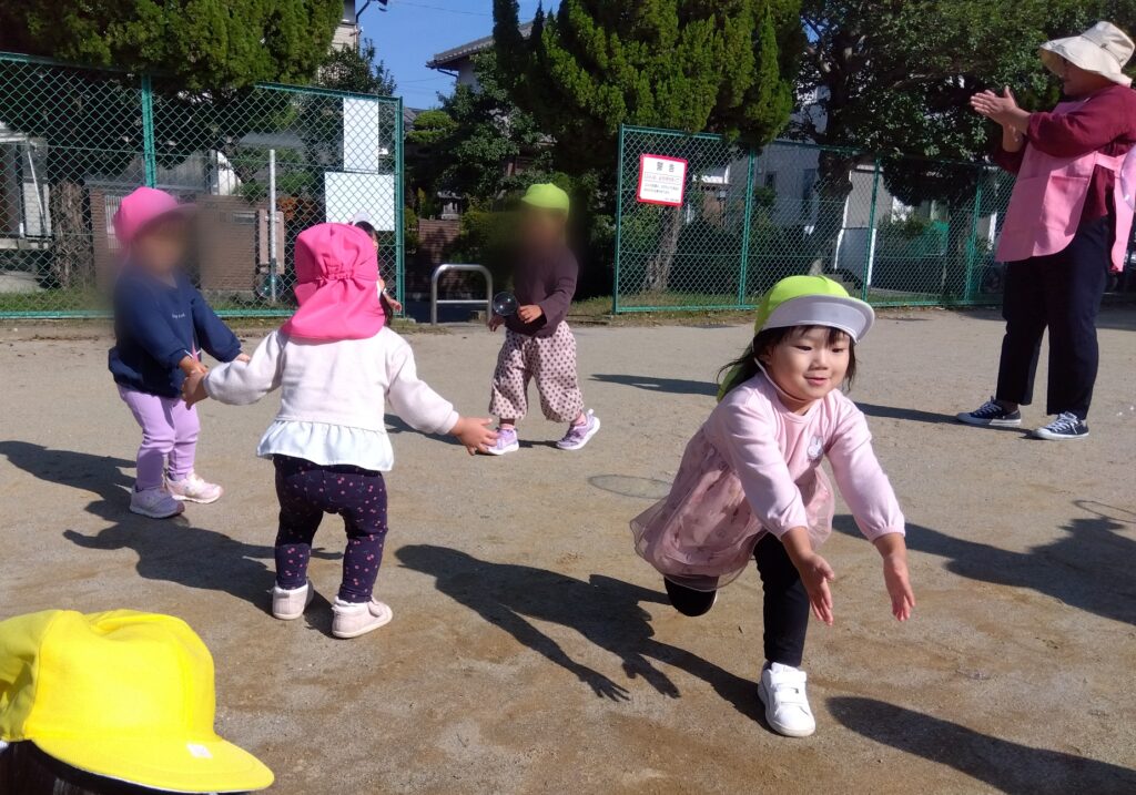 松ぼっくりや落ち葉を拾ったり、かけっこや