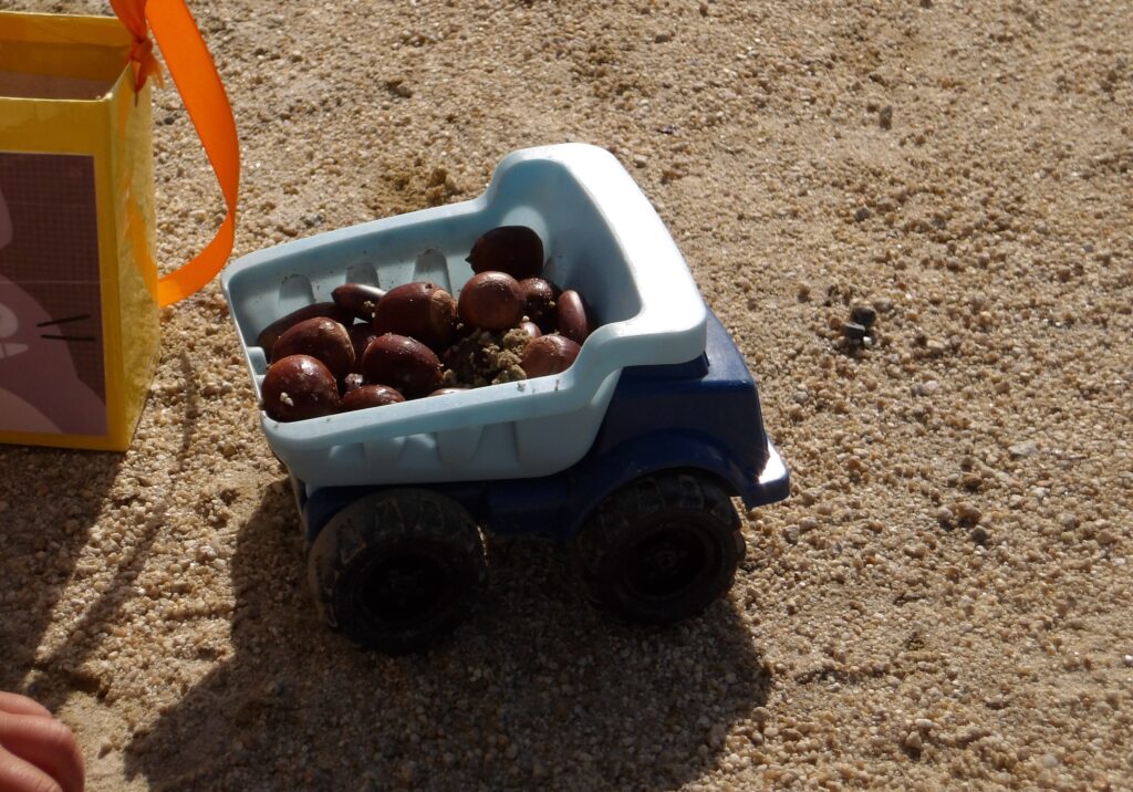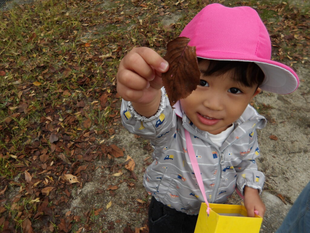 公園へ行くと落ち葉やドングリが落ちているのを発見!!