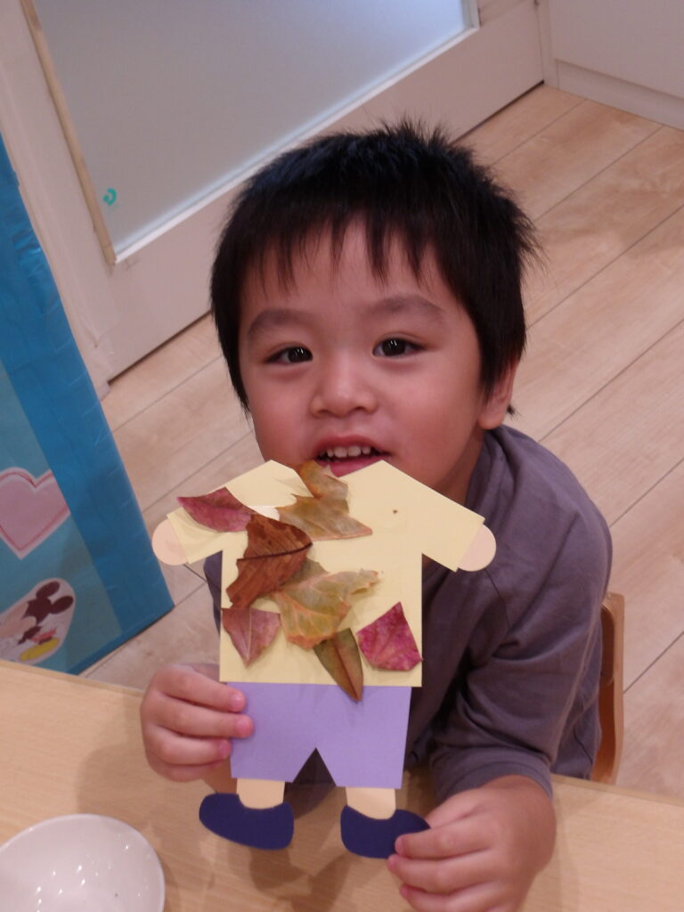 集めた葉っぱをペタペタ貼って、とっても可愛いお洋服ができました♪