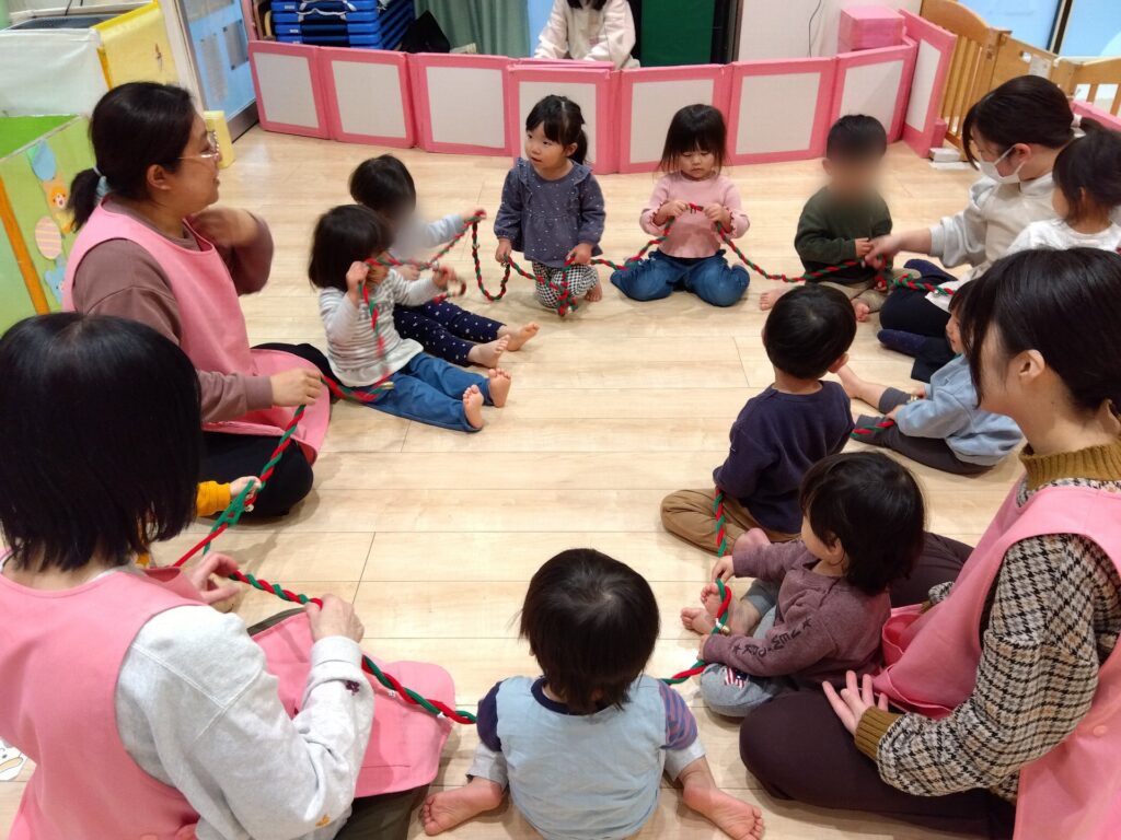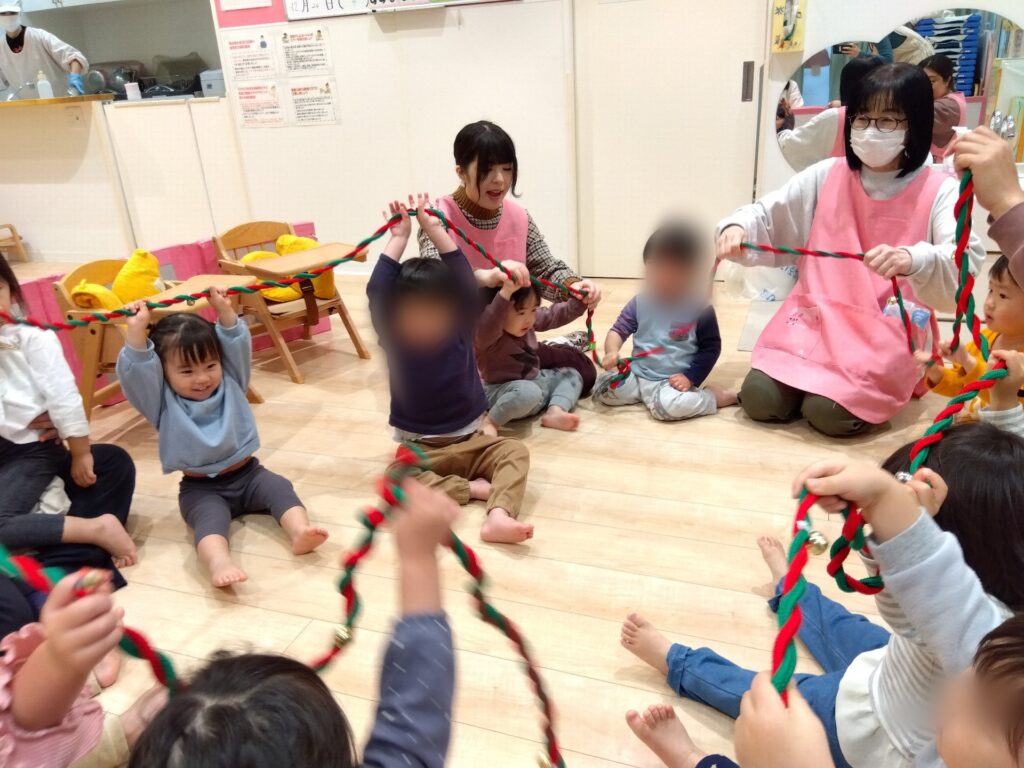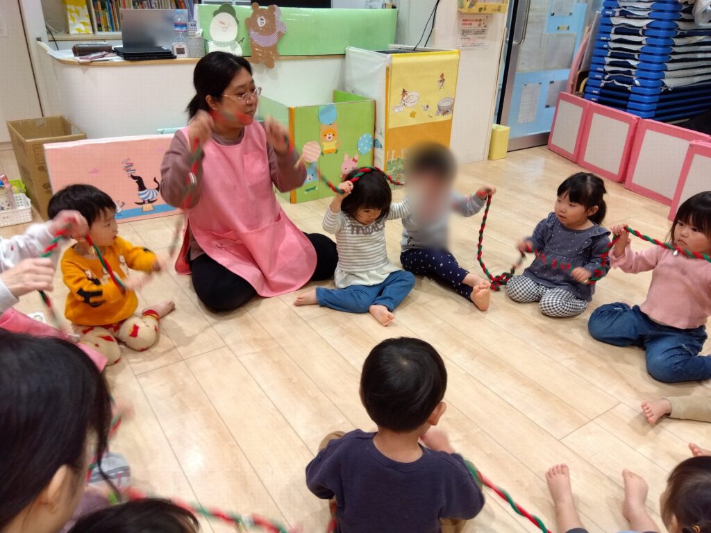 クリスマスの曲に合わせて、みんなで縄をふりふりふり♪