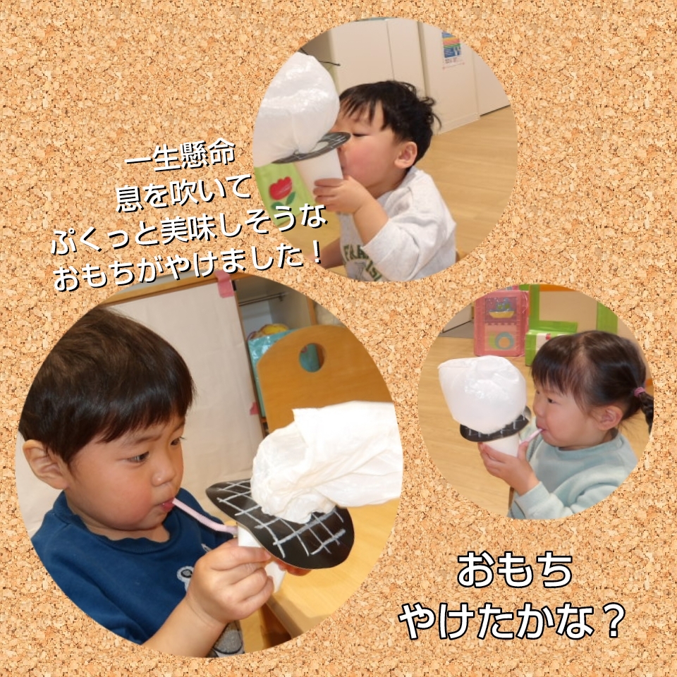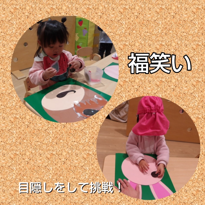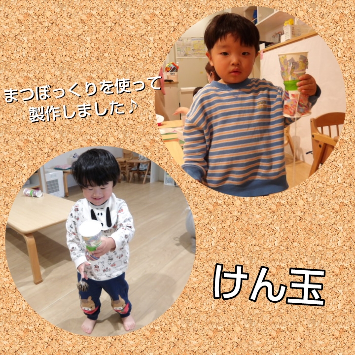 けん玉やおもち製作、たこあげ、福笑い、こま回し