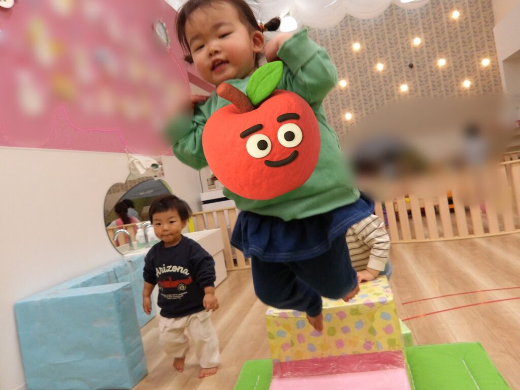 この日はお部屋でサーキット遊び(※)や大きなテントを出しておままごと遊びを楽しみました。サーキット遊びで身体をいっぱい動かして元気いっぱいに遊び、ジャンプ台から大きくジャンプをすると「ほら!」と保育士の顔を見てドヤ顔を決めている子もいましたよ^ ^マットの上ででんぐり返しができる子もおり、前転ができるの⁈と驚きました♡高さのある平均台では、始めは慎重に進んでいる子も慣れてくると「よゆう〜よゆう〜」と言ってすいすい進んでいました!